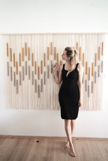 Hledala jsem větší dekoraci, která by mi barevně zapadla přesně do našeho interiéru, ale bohužel nic takového jsem nenašla. Na fotografiích ze zahraničí jsem objevila nástěnné dekorace macramé a byla to láska na první pohled, jenže v České republice nedostupná nebo né podle mých představ. Pustila jsem se tedy do tvoření sama. Zaujala mě velice ta rozmanitost a svoboda v tvoření, kterou mi tahle technika nabídla a stále nabízí.