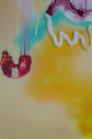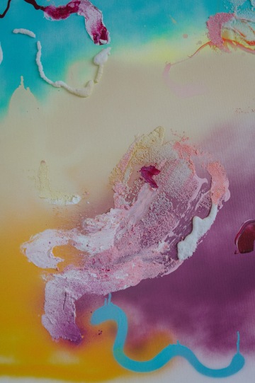 Mám ráda kombinaci akrylu, sprejů a struktur. Tyto techniky mi nabízejí vyjádřit drsnost a něhu zároveň. Kontrasty jsou moje vášeň. Jakmile je na mě něco moc přeslazené - ať už v barvách nebo stylu, cítím potřebu to trochu srazit.