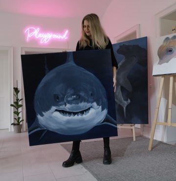 Výstava Life Aquatic spojuje umění s ekologickou osvětou. Každé z vystavených děl odráží křehkou rovnováhu podmořského ekosystému – od impozantního pohledu žraloka, přes hravé hejno ryb až po elegantní pohyb medúz. Dominika Brejchová nás prostřednictvím svých obrazů vyzývá k zamyšlení nad tím, jak jako lidé ovlivňujeme oceány a jak můžeme přispět k jejich ochraně.