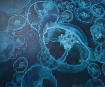 Každé z vystavených děl v sobě nese silné poselství - od pohledu na žraloka, který stojí tváří v tvář divákovi, přes klidně plující keporkaky až po éterické medúzy, které evokují neuchopitelnost a tajemství hlubin.