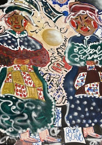 Kombinuji akryl s inkoustem, fixem a sprejem, protože mi umožňují pracovat rychle, nekompromisně a zachytit autenticitu okamžiku. Surové tahy a vrstvení dávají mým obrazům spontánnost, která odpovídá tomu, jak vnímám svět – jako nekonečně proměnlivý, plný kontrastů a energií.