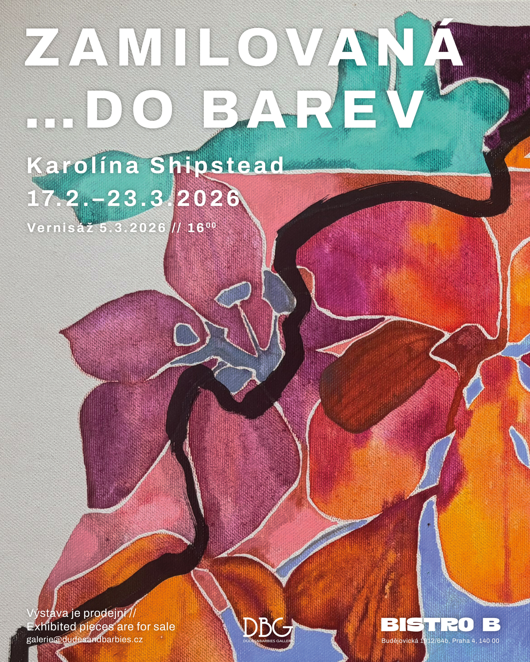Výstava Zamilovaná… do barev je oslavou radosti z tvorby, experimentu a vizuální hravosti. Je to pozvání ponořit se do světa, kde barvy žijí vlastním životem, kde každá černá čára a každý tah štětce vypráví příběh lásky k malbě samotné.