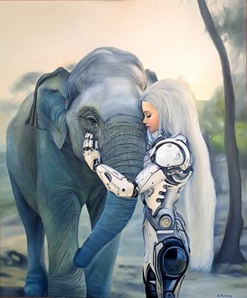 Zuzana Minářová se v posledních letech zaměřuje na téma robotů, které ve svých obrazech představuje s lidskými a zvířecími vlastnostmi. Její fascinace tímto nadčasovým motivem vede k vytváření neuvěřitelných mutací, které, jak sama říká, mohou být tématem budoucnosti. V její tvorbě se setkáváme s kontrastem technologií a lidských emocí, kde každý obraz nabízí divákovi možnost zamyslet se nad evolucí člověka ve vztahu ke strojům. Její technika malby olejem a kresby uhlem na velkých formátech přináší dílům bohatost textur a detailů, které podtrhují dynamiku postav robotů.