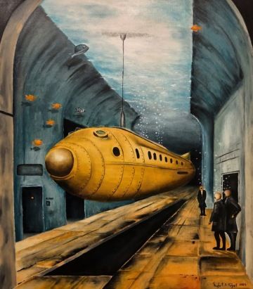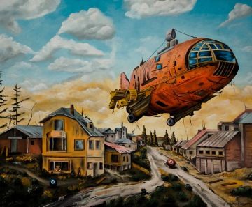 Michał Těhel, ovlivněný surrealistickým odkazem Salvadora Dalího, se ve své tvorbě soustředí na mechanické stroje, přičemž v poslední době zobrazuje například vzducholodě. Jeho surrealistické obrazy propojují tajemství, techniku a nadčasovost, přičemž olejomalba dodává jeho dílům hloubku a živé barvy. Těhelovo ztvárnění strojů a fantastických konstrukcí zároveň osciluje mezi realitou a snem, čímž divákovi nabízí prostor pro zamyšlení nad technologií jako neoddělitelnou součástí našeho světa.