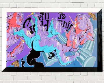 Styl je něco, co nacházím postupnou iterací a neustálým vymýšlením toho, co vyzkoušet a kam tvorbu posunout. Do svého stylu se navíc snažím promítat třeba i svoji předchozí zkušenost z práce jako designér. Proto se v obrazech objevují čisté plochy, nebo text, kde si hrají s fontem. Jako hlavní odlišení beru právě svoji linku, která tím, že není inspirována ničím jiným, než mou fantazií a poznáním, tak by měla být velmi osobní a dodávat motivům odlišný rukopis.