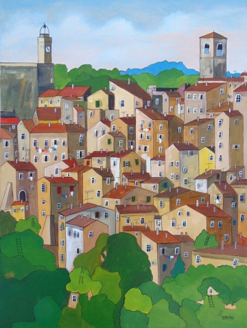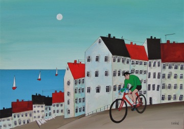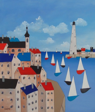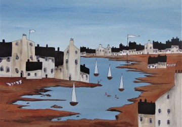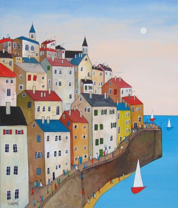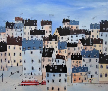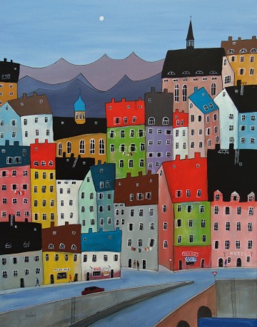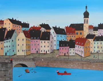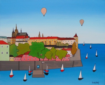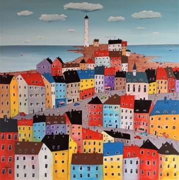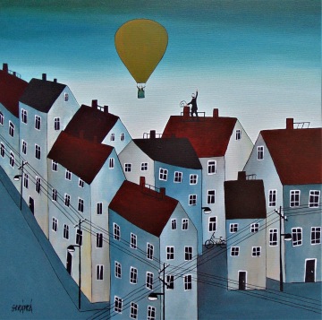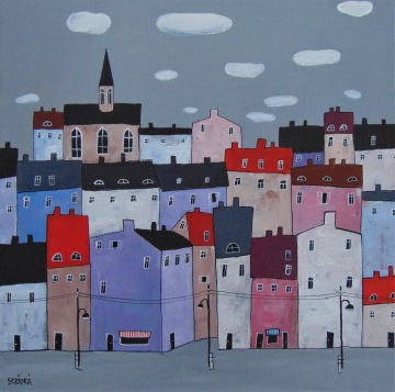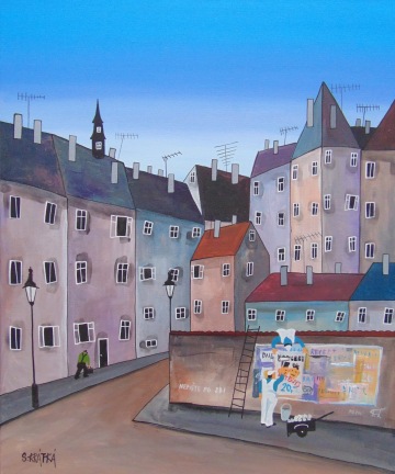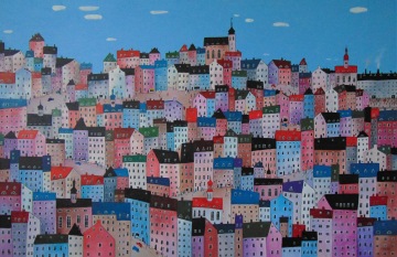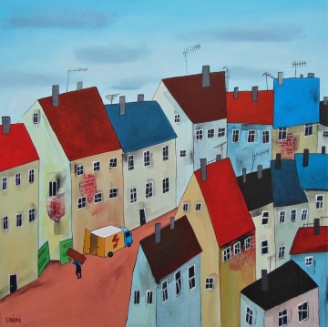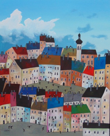 Úplně ze začátku jsem měla blízko zejména ke kubismu a trochu i abstraktnímu umění. Postupně jsem se ale vyprofilovala k naivnímu umění a vytvořila si specifický styl, který charakterizují především domečky.