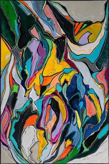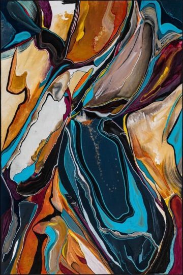 Její abstraktní tvorba je postavena na intuici, spontánnosti a intenzivním vnímání přítomného okamžiku. Šárka experimentuje s akrylem, uhlem, pastelem, strukturovacími pastami i metalickými prvky – výsledkem jsou originální kompozice plné kontrastů, pohybu a emocí.